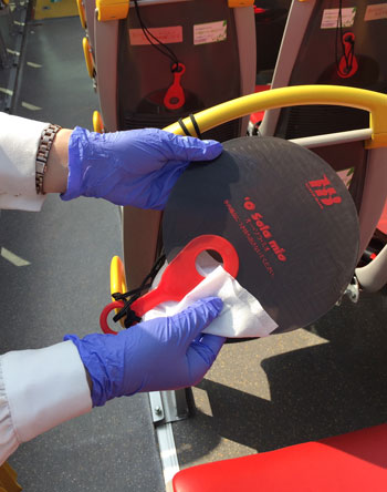 ③車両使用後に車内の消毒を乗務員が実施しています。